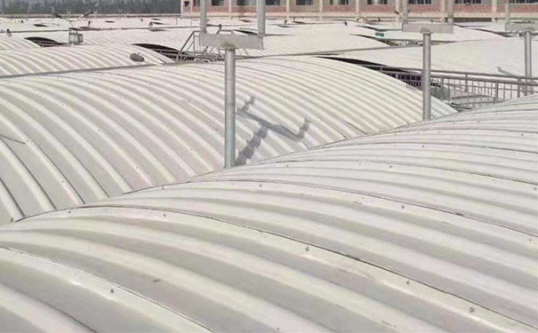 玻璃鋼在是目前污水池拱形罩應用最廣泛的一種材料,污水池拱形罩具輕質高強、耐腐蝕性能好、造價低等諸多優點。其相對密度在1.5~2.0之間,只有碳鋼的1/4~1/5,可是拉伸強度卻接近,甚至超過碳素鋼,而比強度可以與高級合金鋼相比。FRP是良好的耐腐材料,對大氣、水和一般濃度的酸、堿、鹽以及多種油類和溶劑都有較好的抵抗能力。